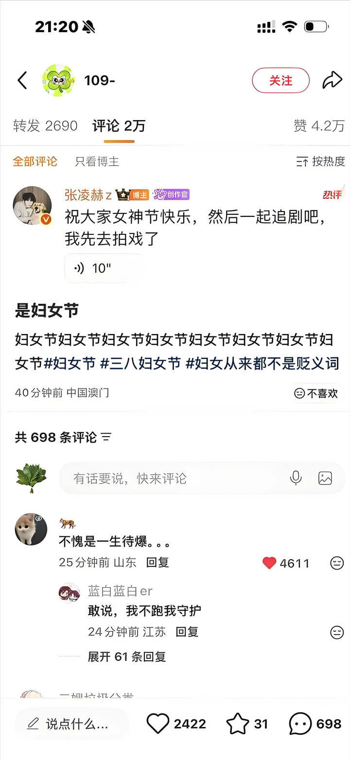2026年3月10日,张凌赫在Instagram道歉称:“让大家不适非常抱歉,每种文化都有独特魅力,本意绝无任何歧视”,并感谢东南亚粉丝支持。