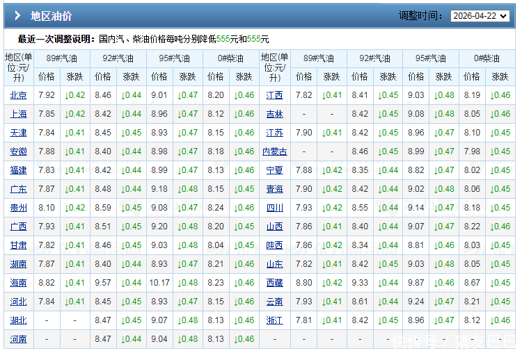 附:全国主流92/95号汽油以及0号柴油价格